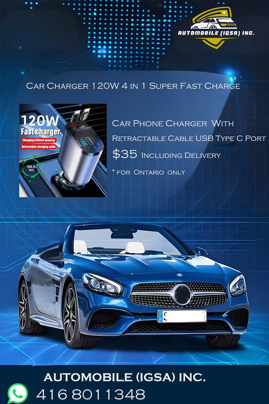 120W 4 in 1 Fast Retractable Car Charger with Dual Type C Cords, Car Accessories Car Chargers for iPhone 16 15 14 13 12 Galaxy Pixel